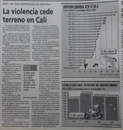 Tercero, se demostraba con cifras estadísticas que Cali había reducido el índice de violencia, debido a que las muertes violentas habían disminuido en un 22%, siendo el 94% de las víctimas hombres y el 6% mujeres.